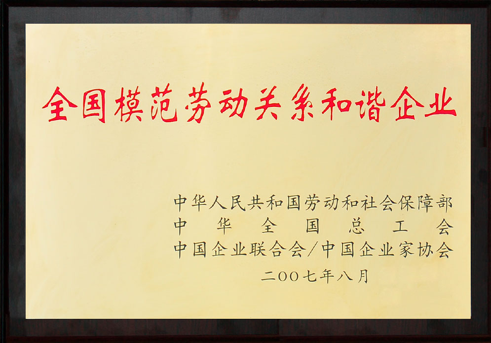 2007年7月獲得“全國模范勞動關系和諧企業(yè)”